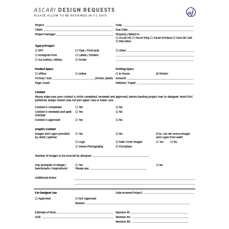 Marketing Material Training Rahil Hoque 9/19/22 Rahil Hoque 9/19/22 Thanksgiving 2022 Memo Read More Marketing Rahil Hoque 8/16/22 Marketing Rahil Hoque 8/16/22 Ascari Gift Cards Summer 2022 Read More Marketing Rahil Hoque 8/16/22 Marketing Rahil Hoque 8/16/22 Ascari Design Request Form Read More Marketing Rahil Hoque 8/16/22 Marketing Rahil Hoque 8/16/22 Summer Poster and Receipt Cards Briefing Read More Marketing Rahil Hoque 8/16/22 Marketing Rahil Hoque 8/16/22 Current List of Sales and Promotion v1 Read More